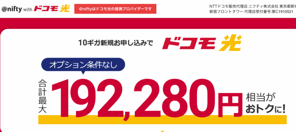 またプロバイダー会社のniftyから申し込めば、20,000円の高額キャッシュバックが進呈されます。各窓口で受け取れるキャッシュバックを表にまとめました。